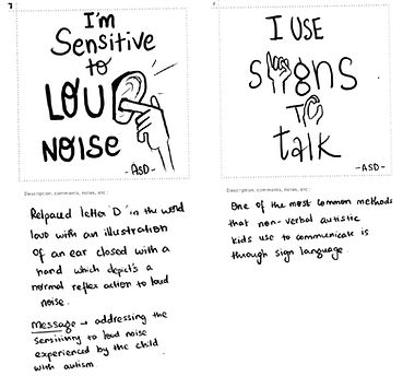 "Voices of the Spectrum" is a series of empowering stickers designed to support individuals on the Autism Spectrum in expressing themselves more effectively while accommodating their unique sensory needs. Many individuals with ASD experience sensory processing difficulties, which can manifest as heightened sensitivity to bright lights, loud noises, and strong smells, often leading to sensory overload, distress, and anxiety. These stickers are thoughtfully crafted to be gentle on the senses, providing a visual communication tool that helps convey emotions, needs, and thoughts clearly. By understanding and respecting these sensory sensitivities, "Voices of the Spectrum" aids in enhancing expressive abilities, contributing to greater autonomy, comfort, and understanding in daily interactions.